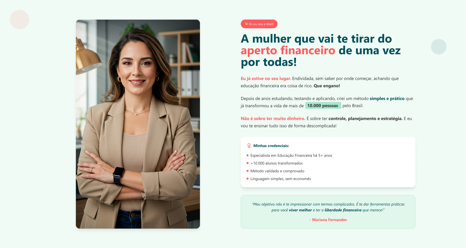 Desenvolver uma presença online profissional e persuasiva que facilite a conversão de visitantes em alunos, oferecendo uma experiência envolvente e clara para os usuários conhecerem o método, entenderem seus benefícios e se sentirem motivados a dar o primeiro passo rumo à liberdade financeira.