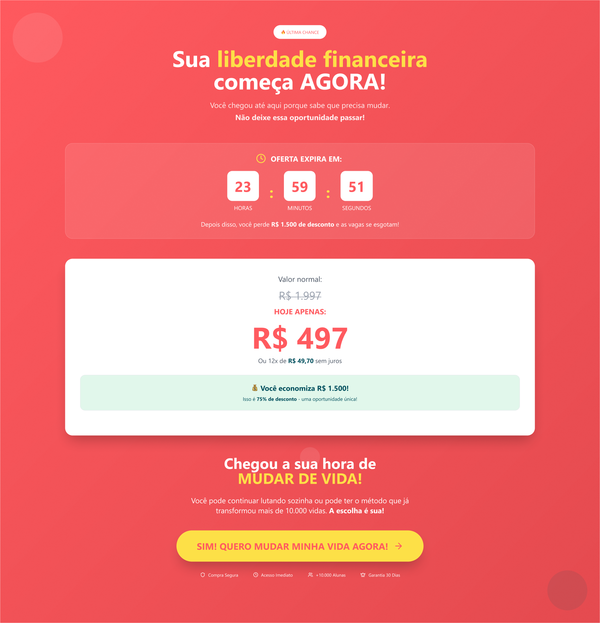 - Estrutura de vendas otimizada com depoimentos e garantias